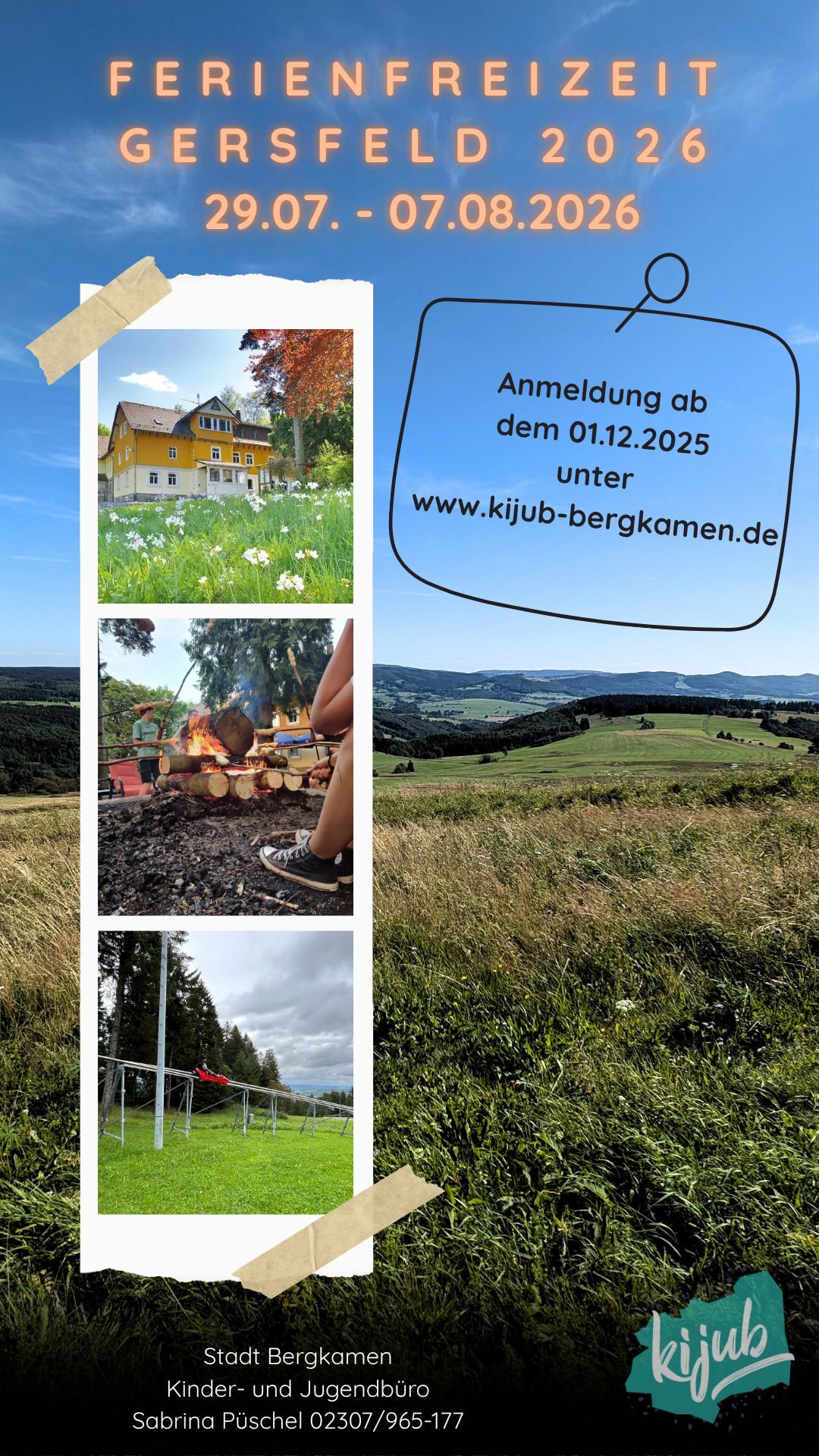 In den Sommerferien 2026 bietet das Kinder- und Jugendbüro der Stadt Bergkamen (kijub) wieder zwei spannende Ferienfreizeiten an. Vom 29. Juli bis 7. August geht es nach Gersfeld in der Röhn.