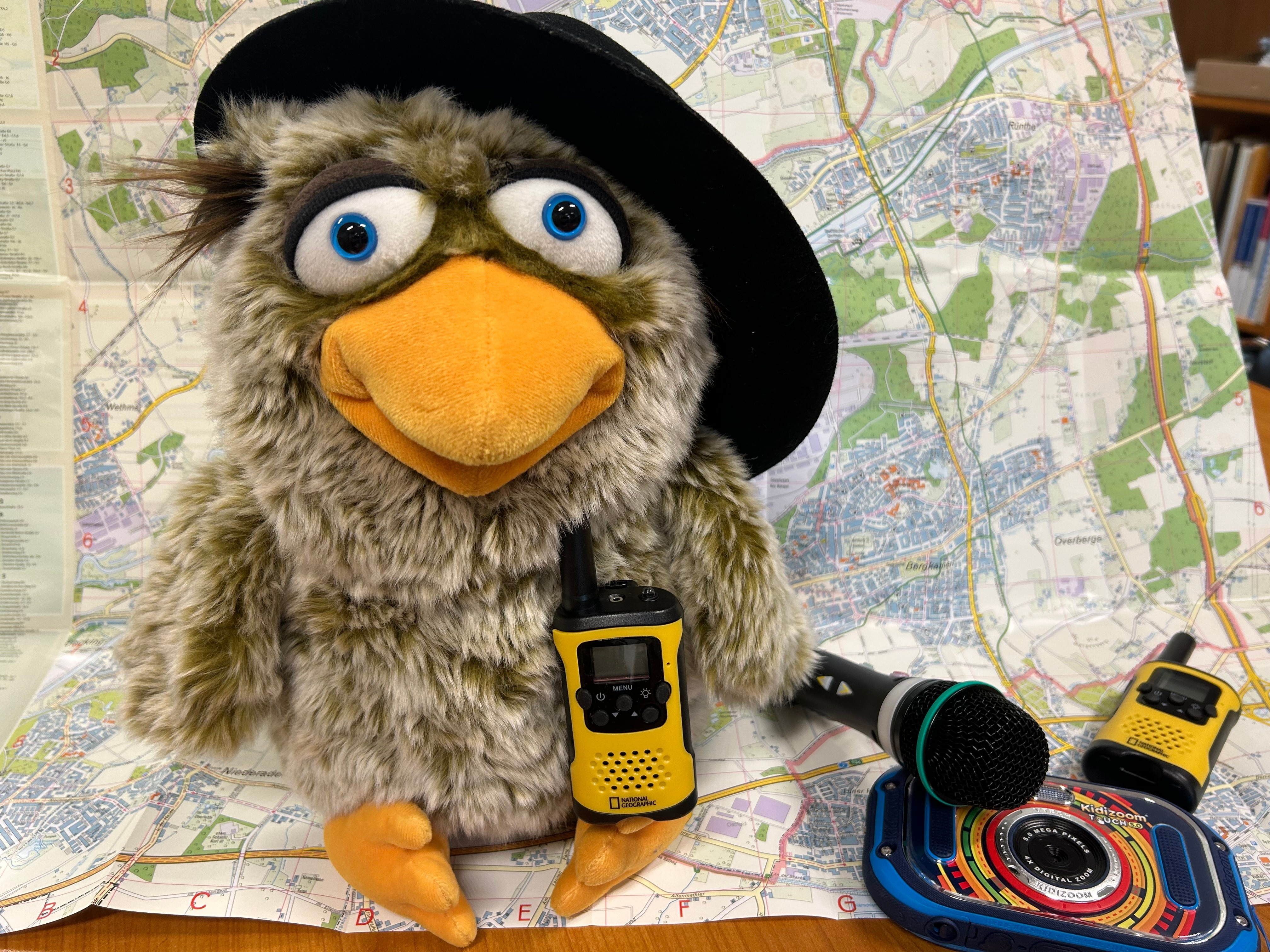 An unserer Seite: Pixel, die schlaue Eule und unser Maskottchen! Vier Tage lang begleitet uns Pixel mit spannenden Aufträgen, kniffligen Rätseln und aufregenden Entdeckungstouren durch den Stadtteil. Dabei erkunden wir besondere Orte, sammeln Hinweise und überlegen gemeinsam: Was gefällt uns hier? Was könnten wir verändern? Welche Ideen haben Kinder für ihren Stadtteil?