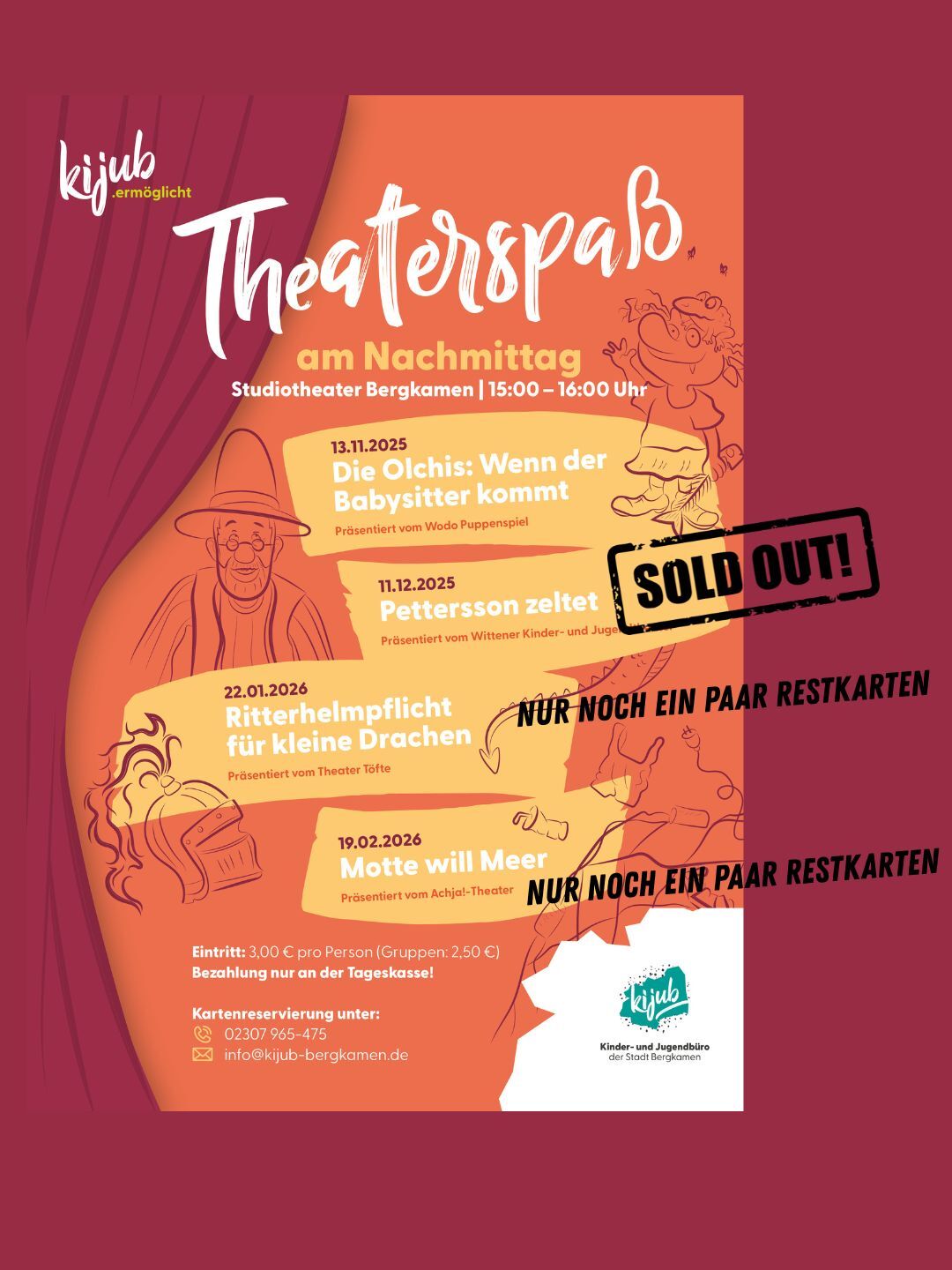Das Kindertheaterstück "Pettersson zeltet" vom Wittener Kinder- und Jugendtheater am 11.12.25 ist leider restlos ausverkauft! Auch an der Tageskasse gibt es keine Tickets mehr!